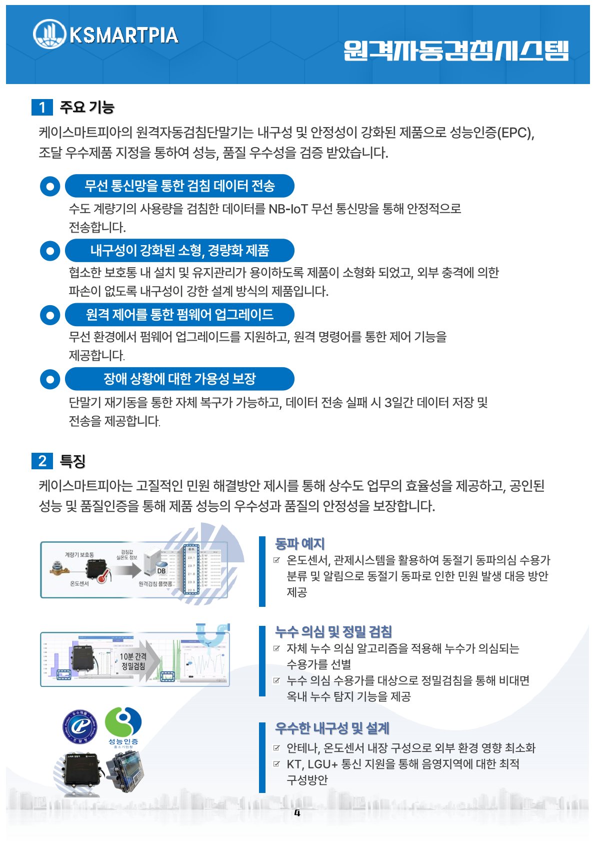 ![]() | 비대면 옥내누수 검사 기능으로 효율적인 누수 관리 효과 |